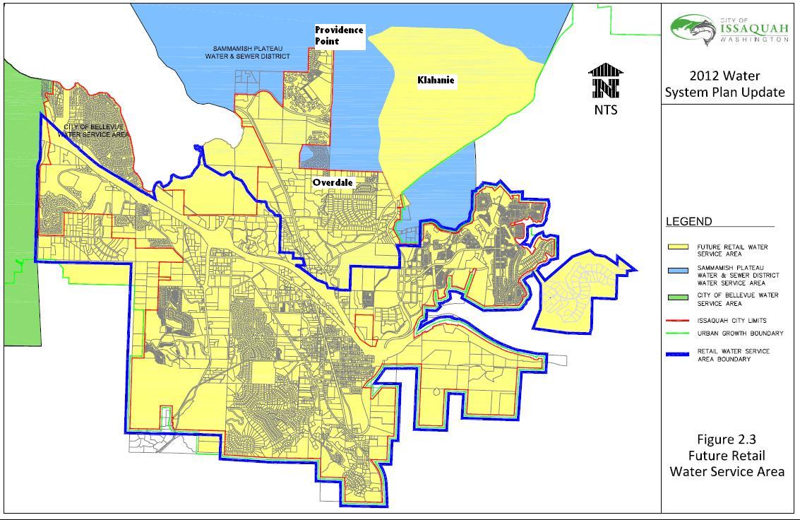 In this flyer, Issaquah says it does not have plans to provide water and sewer service to Klahanie. What the city is not saying is that it does have plans to include Klahanie in its future utility service. In Issaquah’s own 2012 Comp Plan, the city clearly shows Klahanie inside the “Future Retail Service Area” (Figure 2.0x).