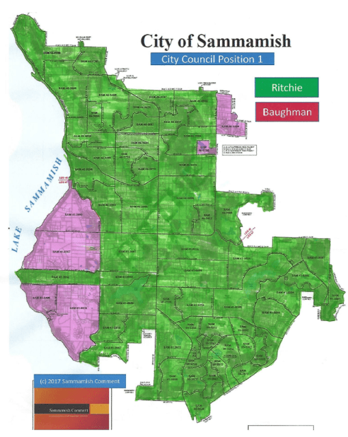 Or, alternatively, Ritchie won the majority of the vote because the voters of Sammamish felt he was better qualified? There is always that possibility, right? You seem to be looking for excuses for Baughman’s loss, when the map just tells me that Ritchie was the favored candidate and it could be because they liked what they heard from him.