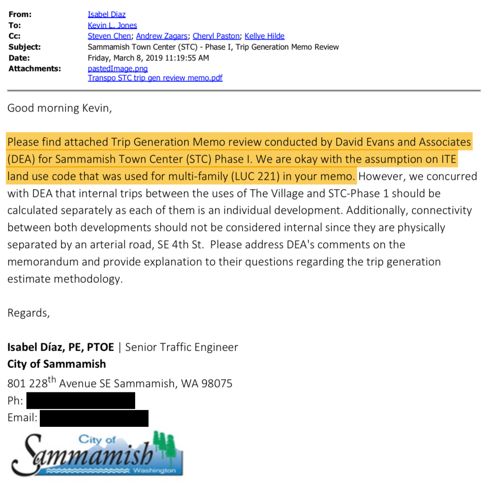 Now, emails obtained by the Sammamish Comment through a public records request reveal that city staff inexplicably overruled its own engineer in favor of STCA’s engineer when forecasting the number of car trips the project would generate.