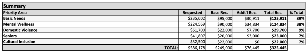On Oct. 2, 2018, the City Council voted 6-1 to fully approve the funding recommendations of the Human Services Commission, that included an increase from the previous year: