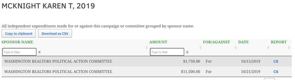 - UPDATE: WA Realtors PAC spend $11,500 to promote McKnight