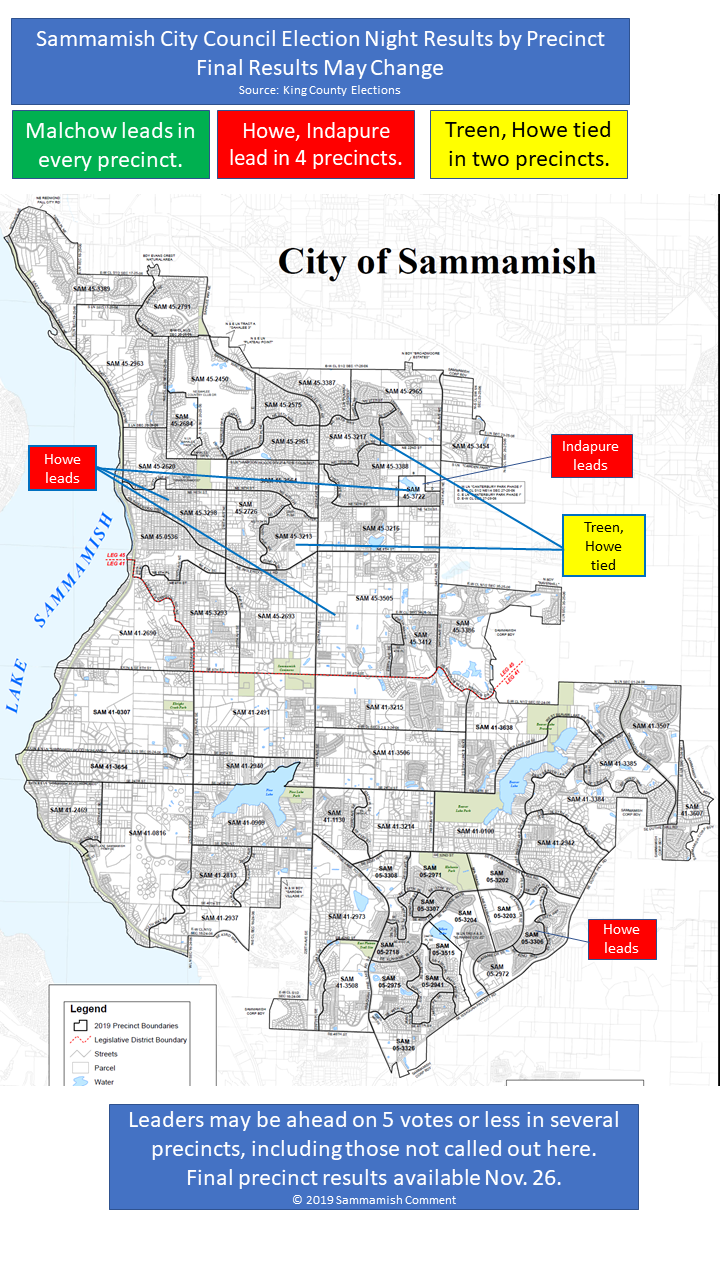 Elec Night PCT Leads Published November 10, 2019 at 720 × 1280 in I-976 $30 car tabs win in Sammamish; Council precinct analysis